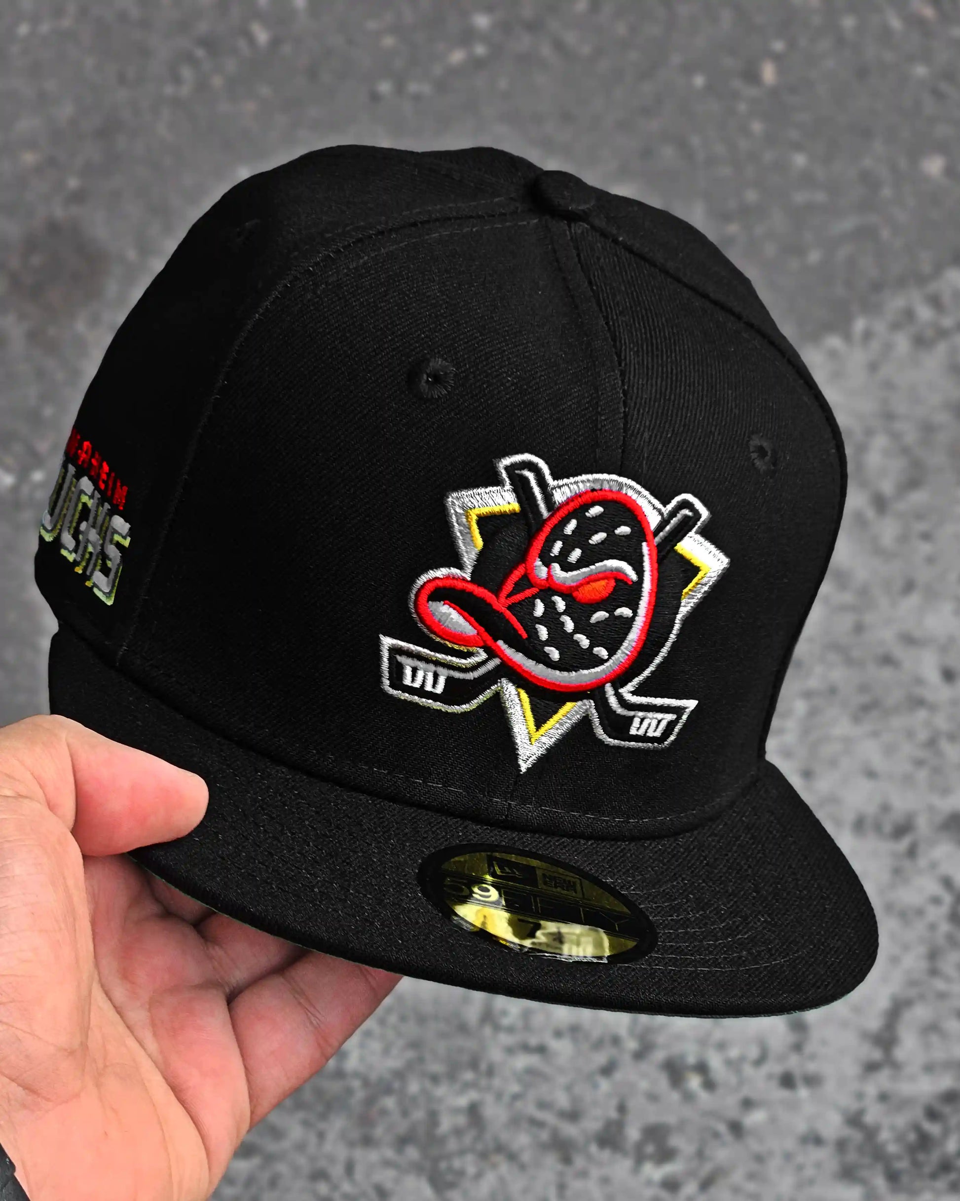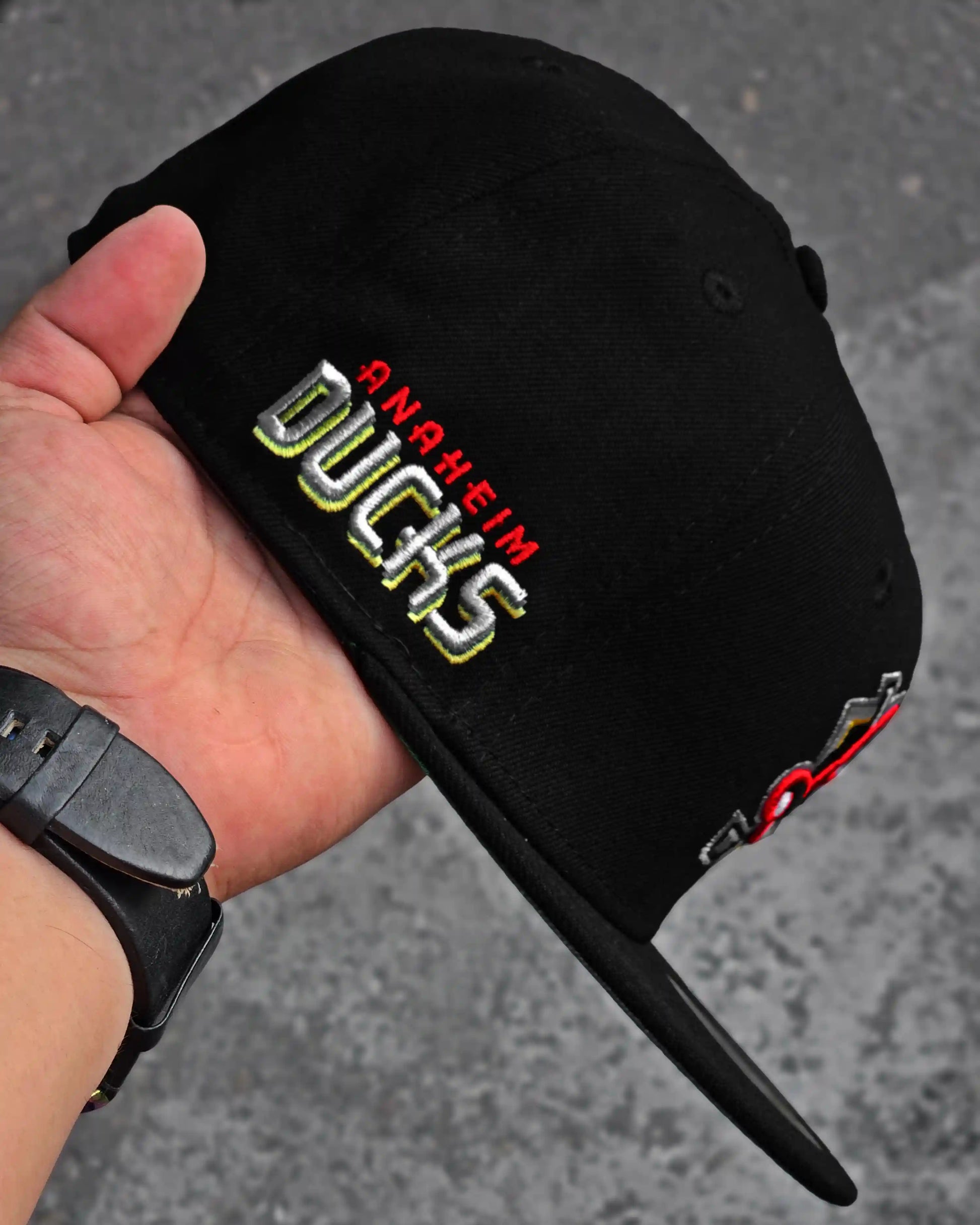 - Logotipo de los DUCKS de ANAHEIM bordado en la parte delantera