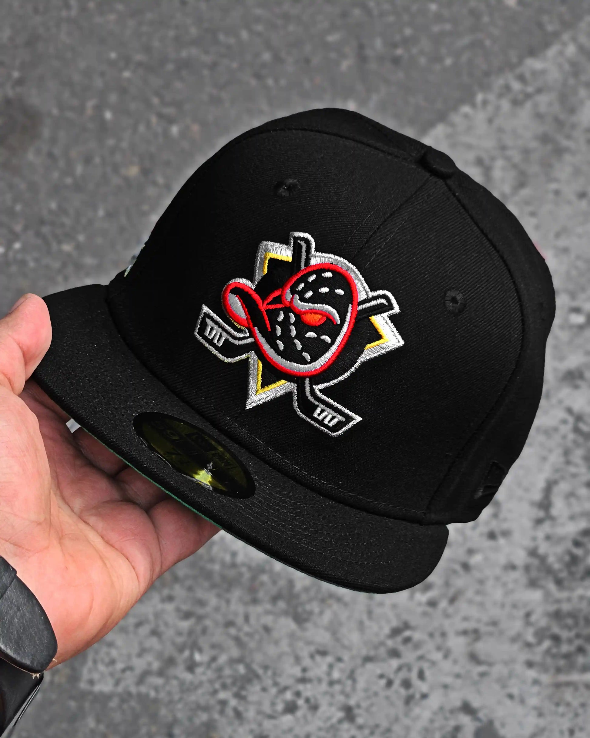 GORRA CERRADA ANAHEIM DUCKS NEGRO NWT 5/8 UV VERDE