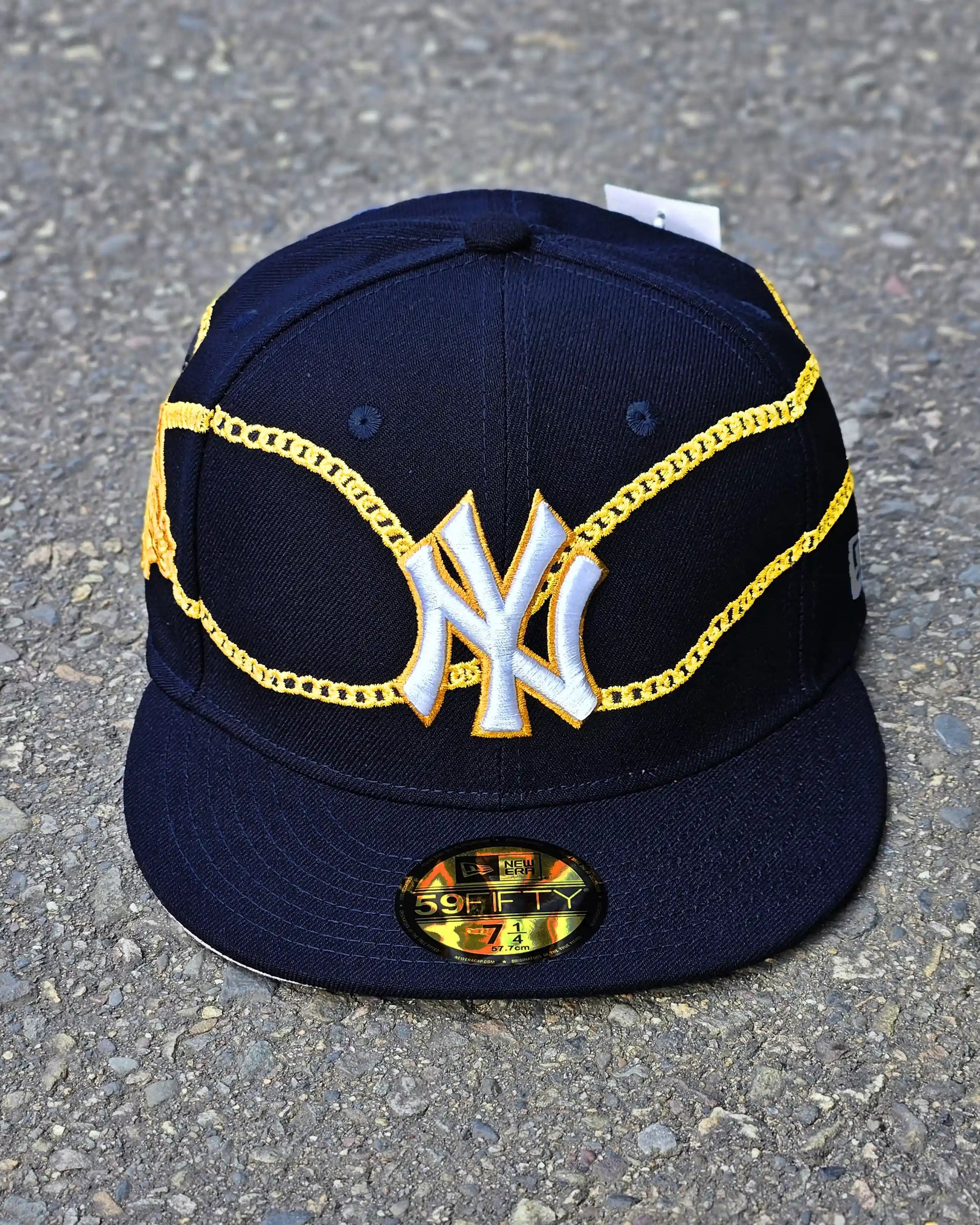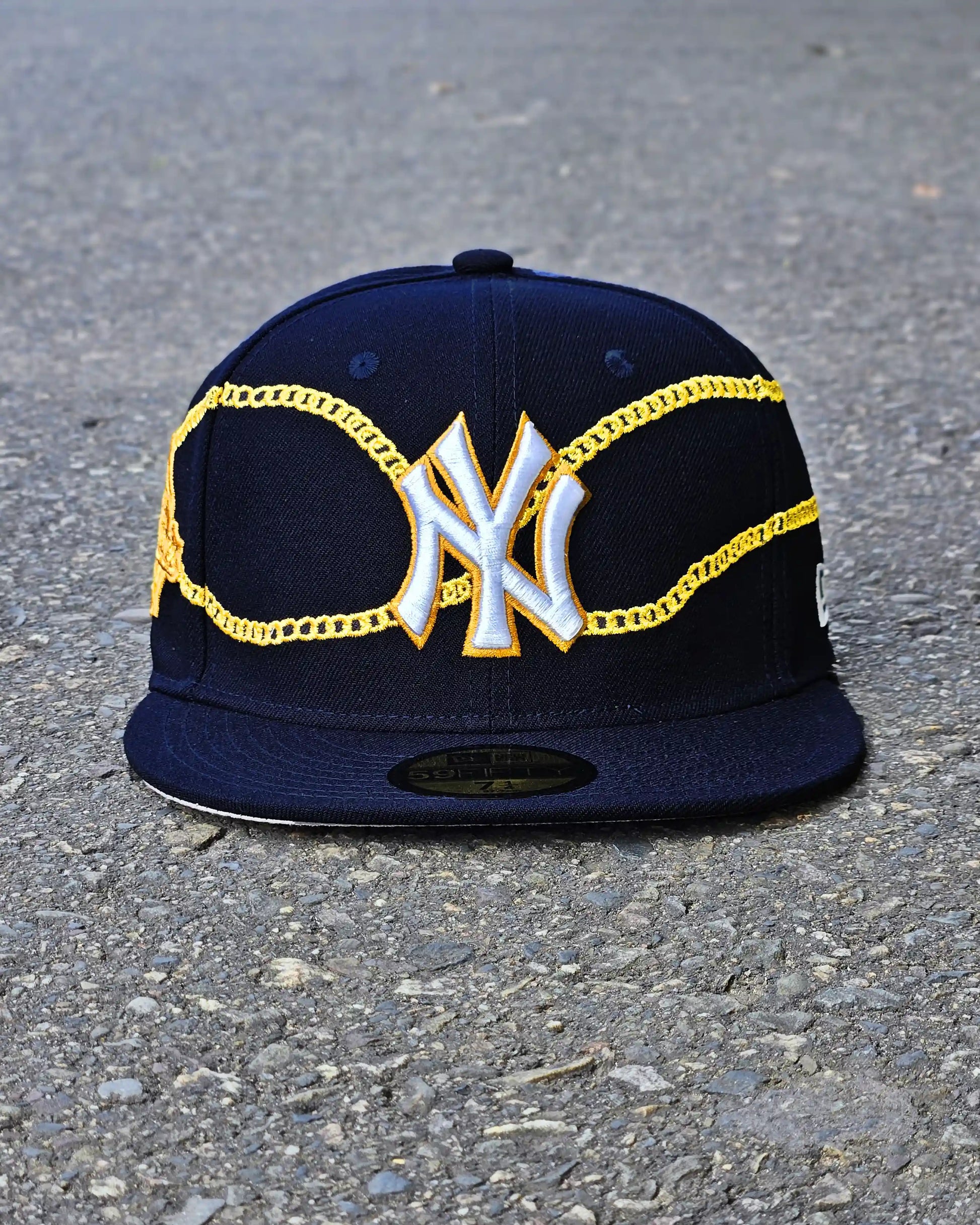 GORRA CERRADA NEW YORK YANKEES NAVY CHAIN WRAP 59FIFTY DORADO